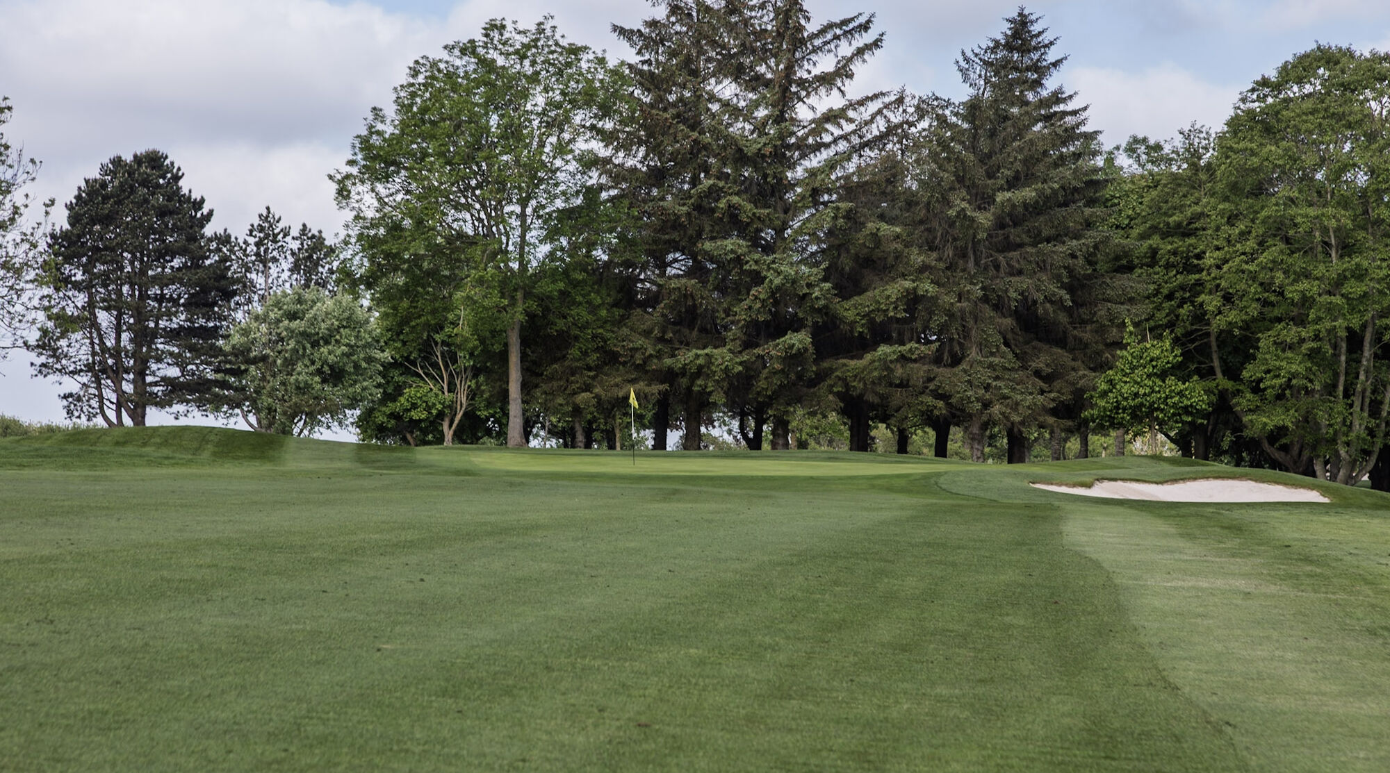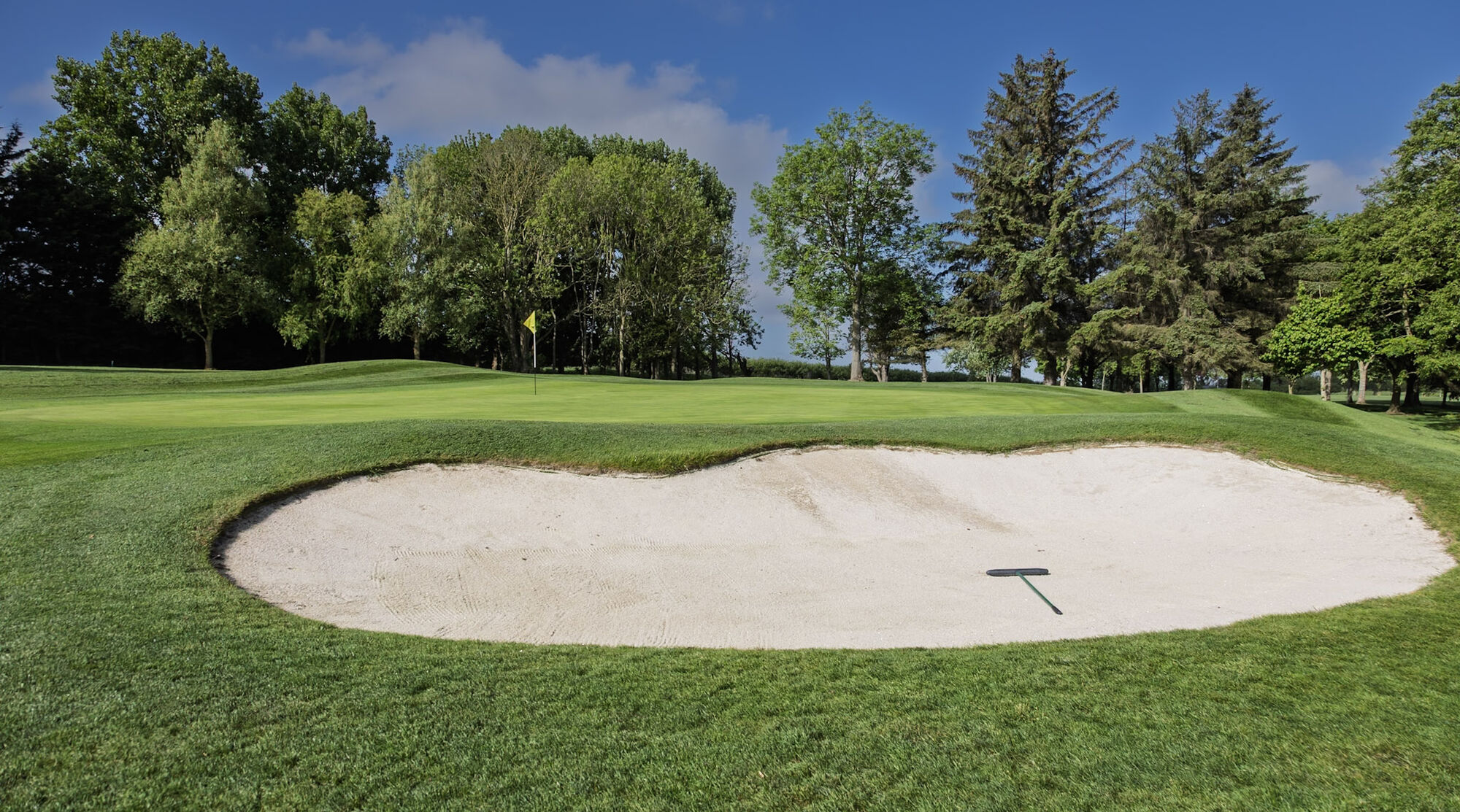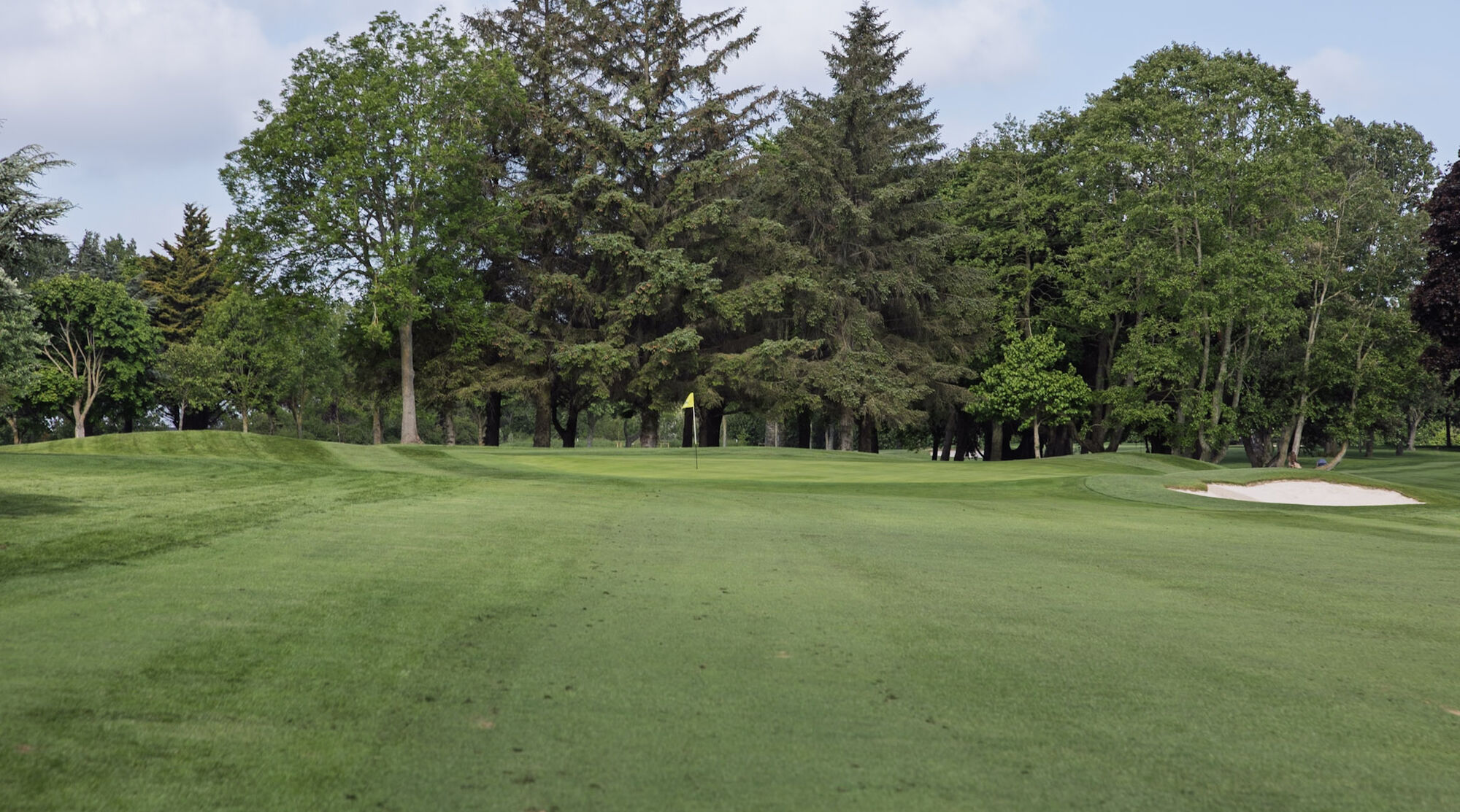 The best way to approach the green is from the left side, to avoid the bunker at the front right of the green. The green slopes from back left to the front right.